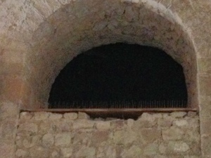 There are four museums located within the fortress, a historical, a fantasy light technical show, historic home of Bertrand Duguesclin, Knight in the 14th century and his wife, Tiphaine de Raguenel, a famous astrologist who read the destiny of the world in the stars. Must have been a interesting household!! The fourth museum is a Maritime Museum showing the tidal phenomena and a collection of 250 model boats. Since I didn’t have time to tour all and walk the abbey too, I chose the historical museum covering 1,000 years of history, the monks who lived and dedicated their lives to the building of the abbey. I found out there were numerous medieval instruments of torture and captured a picture of a bed of nails high up above in the wall by wheel for lowering the drawbridge.