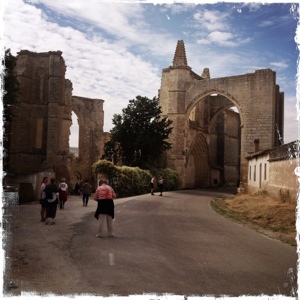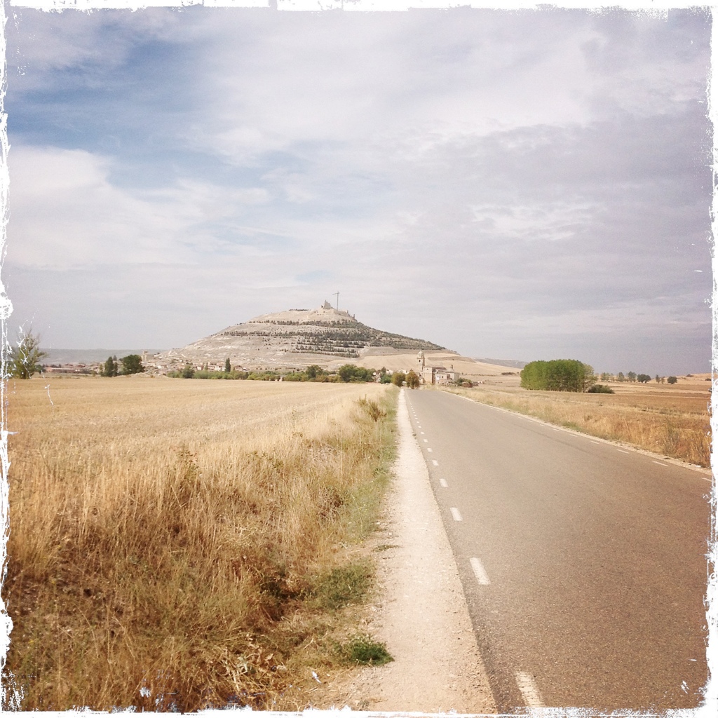 As I came to these ruins, the dynamic duo were sitting in a secluded corner just finishing lunch. They asked if I was planning on staying at the Albergue here. I told them that my plan was to walk another 3.8 kilometers to the town of Castrojeriz. By this time, I had completed over 25 kms and my left knee was protesting loudly. Doreen and Chris said I could walk with them and since it was so late – after 12 noon – the possibility of getting a Albergue room was slim. The walk through this town is over a kilometer in length. The city is built like a three tier birthday cake along the side of a hill.