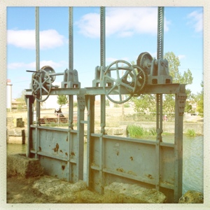 After a delightful half hour break talking with a couple from Australia and a single young lady from Denmark, we needed to complete the final 6 kms to Fromista. It was an enjoyable walk along a canal with a brisk wind at our backs. It was about 12:45 pm when we entered the city. We entered over a lock bridge. There were a series of five locks built in the 1800’s and was used to transport grain. Fromista is considered the bread basket of the region of Palencia. Fromista has had this role since Roman times.