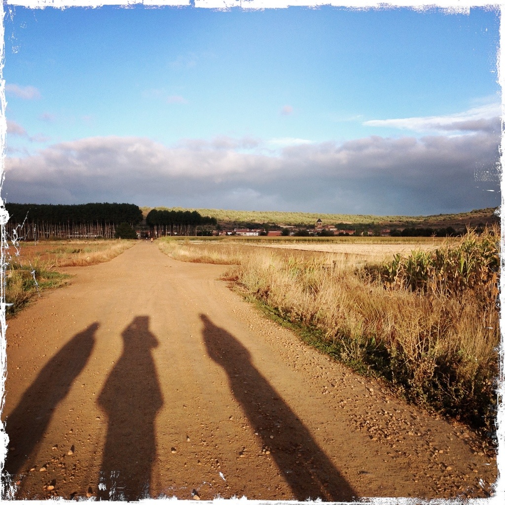Our room was so quiet, that we all overslept. It was 7:30 am before any one got up. We had a bit of breakfast and were out the door of the albergue just as the yoga class started for those who were staying. The western sky had heavy dark clouds but the sun was trying to warm our backs as we started down the road.