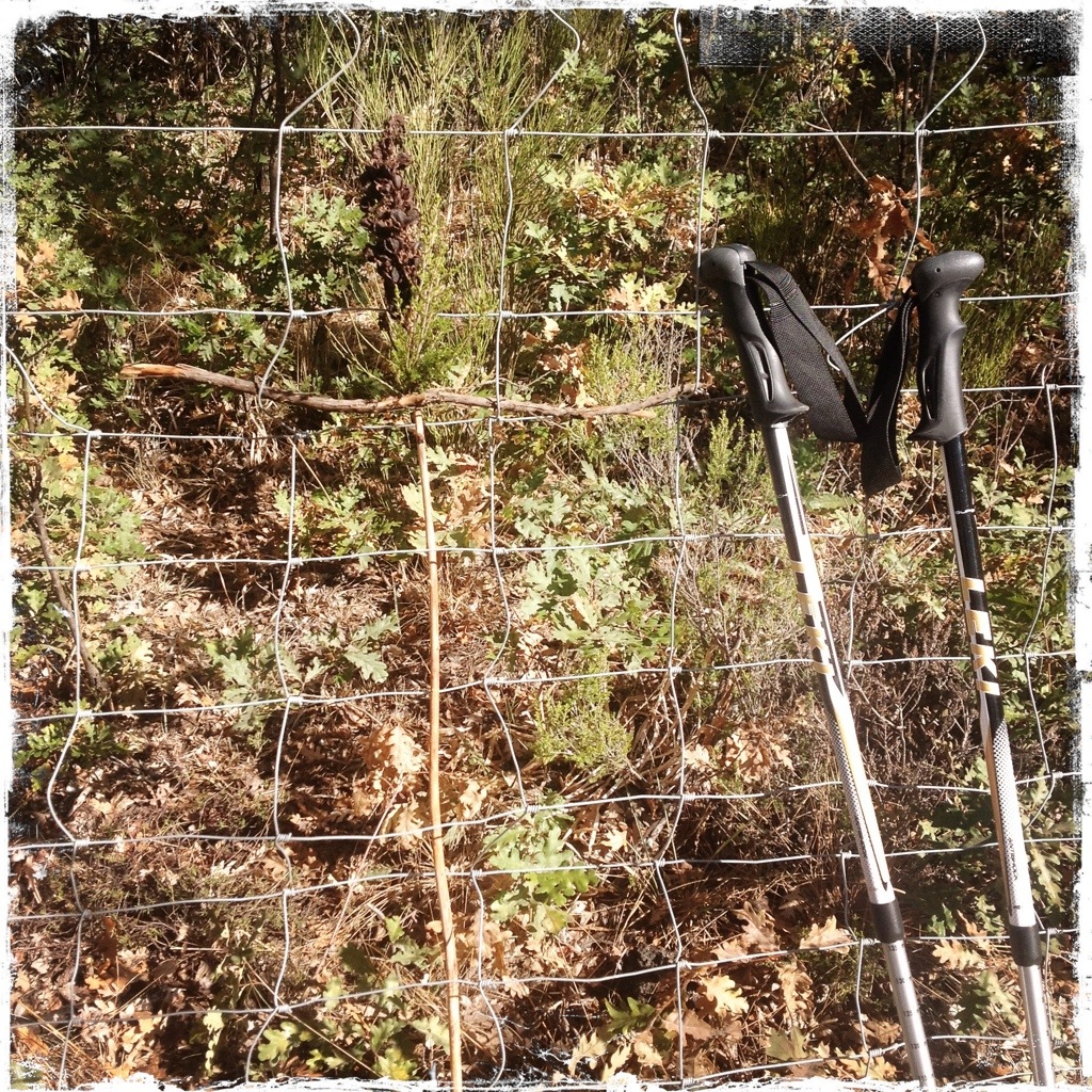 About 2 kms from Rabanal del Camino the path was thru a woodland where the canopy of trees provided a shaded walk. Along the path there was a fence and pilgrims had added crosses into the wire of the fence.