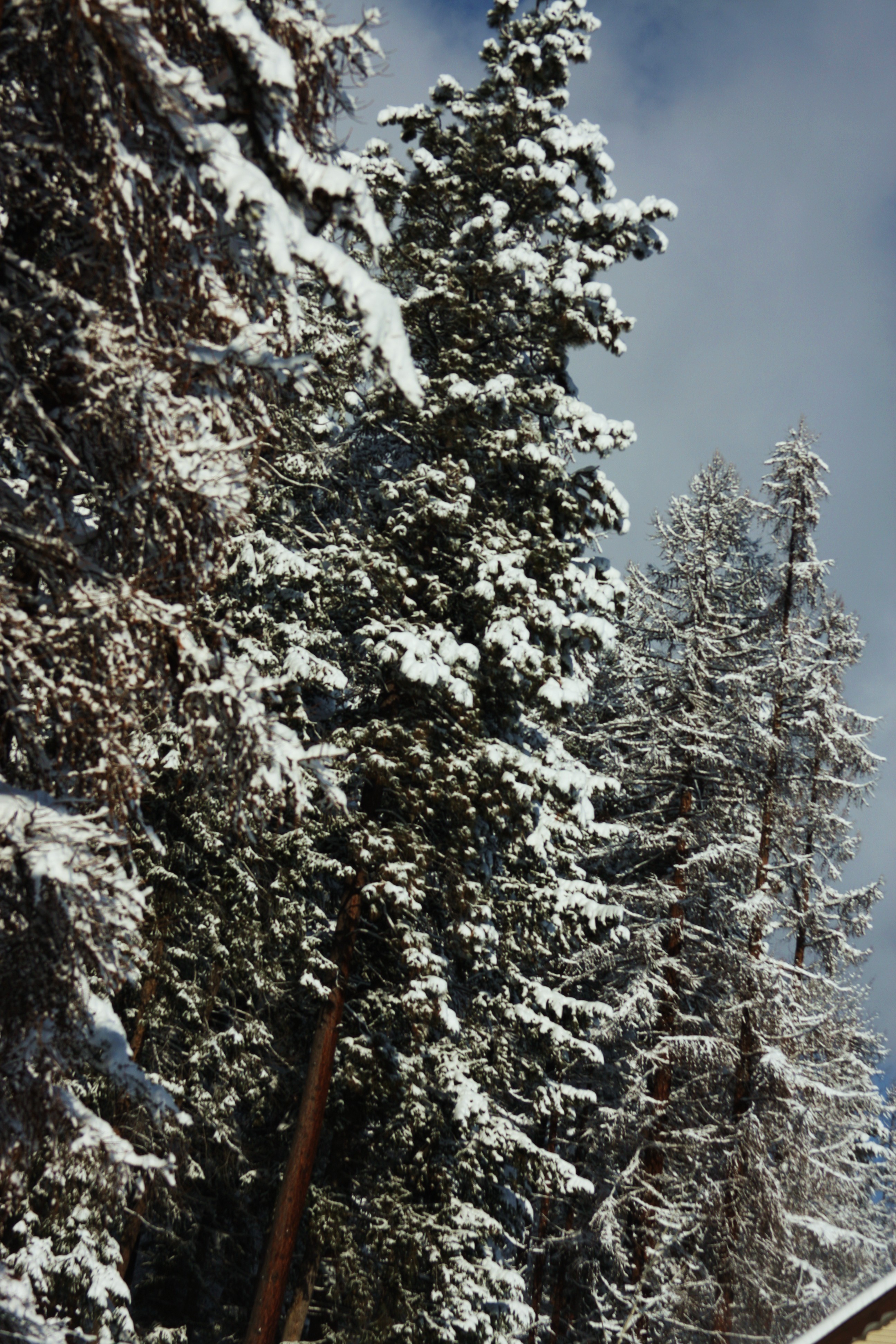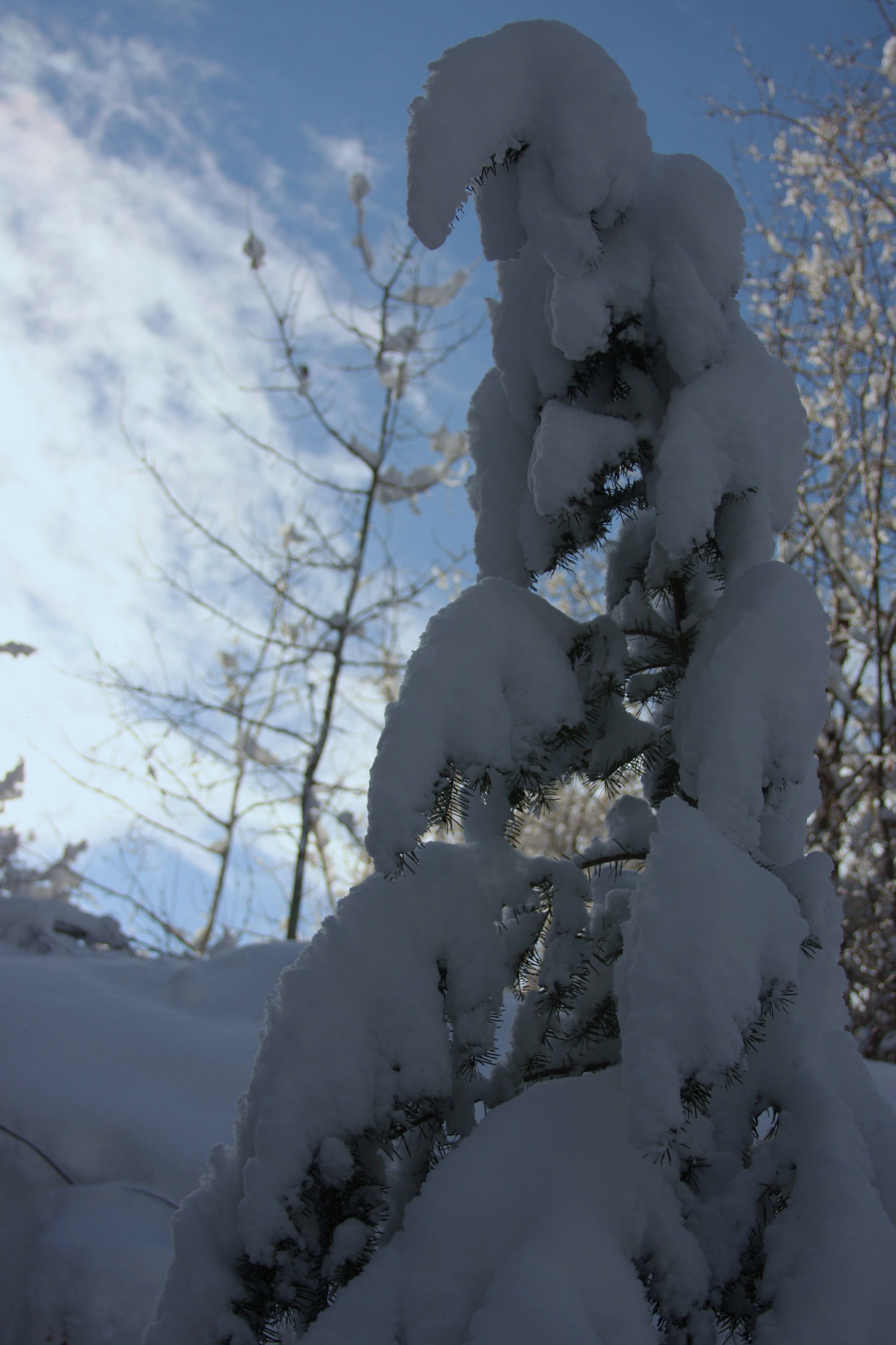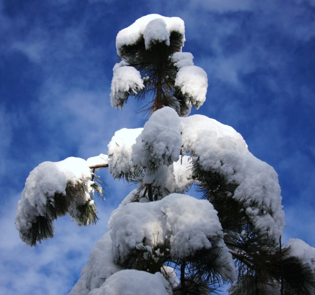 Although winter is relinquishing its grasp and the snow is hard, crusty and dirty. I look forward to the warming temperatures and the greening of the trees and the earth surrounding them. As my farewell to winter, I want to remember the magic of the first real big snowfall of the winter season. The snow usually contains a lot of moisture, is heavy and sticks to everything. While the storm rages it is comforting to be indoors and looking out. It is the morning after the storm that the magic abounds. It is wonderful to be outside and looking up at the accumulation of snow on the branches of the trees and the formations created by the fresh snow. The sun catches the ice crystals and it looks like the trees are glowing.