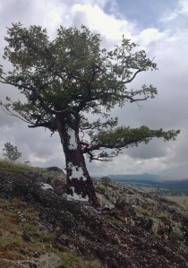Approaching the top of the butte we had to pass by an old tree leaning into the hillside.
